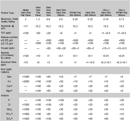 Water used in the production of semiconductors must be extremely pure. Ionic impurities in the water can cause short circuits in the device and organic contamination in the water can cause problems as they coat surfaces and cause defects.